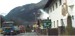【この峠付近はすぐ東に村があり、高さは感じませんが、南にオッツ側の山、北にミーミンガーの峰が見え、良いところです。若干曇り天気に変わってきました。山の天候は変わりやすいです。晴れるとこの教会も、壁絵ももっと映えるでしょう】