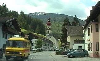 ![]() 【d02.jpg:国境の村ブレンナー。教会や古い建物・宿場が並ぶ街道】 |