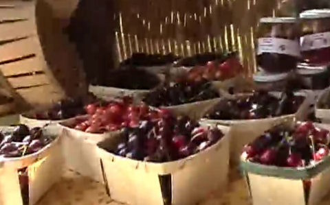 【通りの店で果物買う】